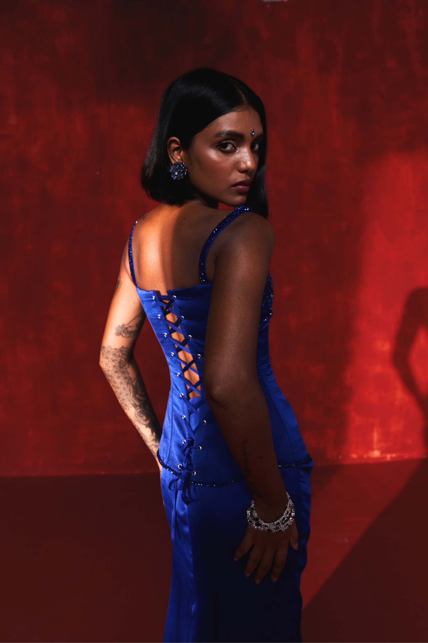 A high-drama silhouette with quiet power, Kobalt is Layrrd’s elevated take on the saree-gown hybrid. The saree pallu is detachable and doubles up as a standalone dupatta — styled your way. Built for the season’s most photographed moments.